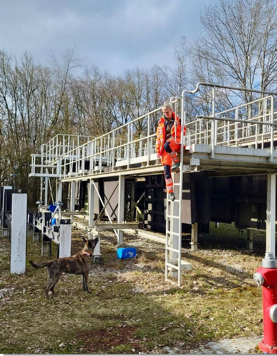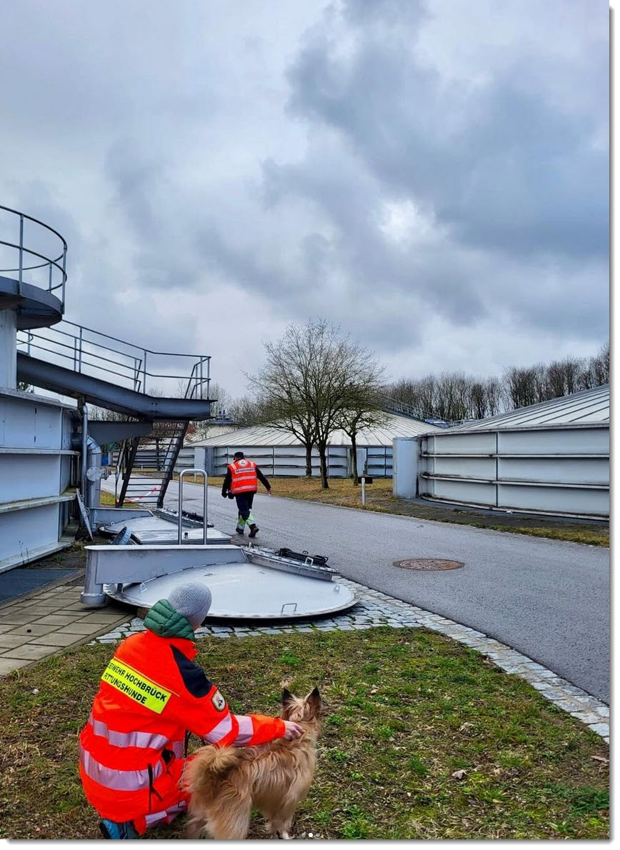 Das heutige Training der Rettungshundestaffel der Freiwilligen Feuerwehr Hochbrück fand im Klärwerk Gut Marienhof statt. Wie immer wurde das Training dem jeweiligen Übungsstand der einzelnen Teams angepasst. Die Einsatzhunde erhielten in dem angrenzenden Waldbereich inmitten von Kaninchen und Rehen und somit mit ausreichender Ablenkung ausgedehnte Suchen, während sich die Jungspunde in Anzeige- und Motivationsübungen beweisen durften. Durch die für die Hunde ungewöhnlichen Gerüche, aber auch das zwingende Umgehen diverser Gefahrenstellen wie beispielsweise die vielen Klärbecken, bei denen der Gehorsam und die Führigkeit trainiert werden konnte, zeigte sich das Gelände als ideale Trainingsmöglichkeit, um die einzelnen Teams weiter zu fördern.